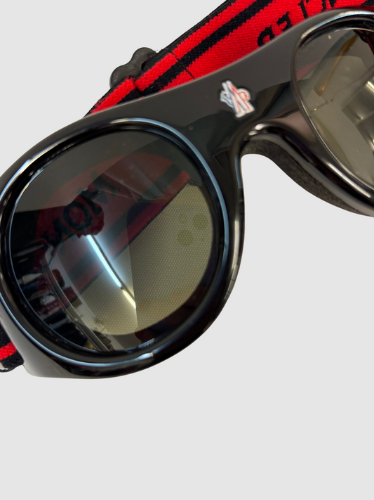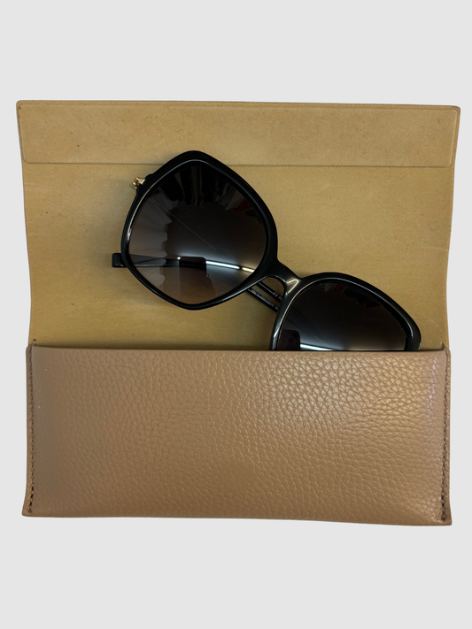 Schwarze Sonnenbrille mit goldenen dünnen Bügeln von Max Mara