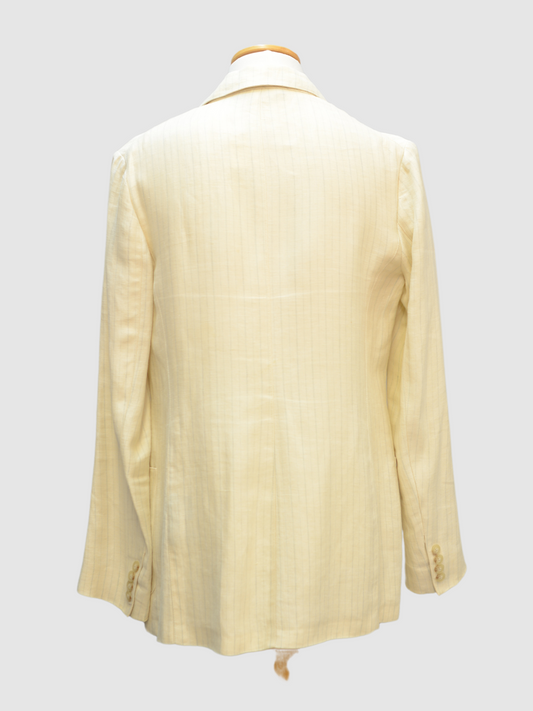 Cremefarbener Leinenblazer mit blauen Streifen von Ralph Lauren