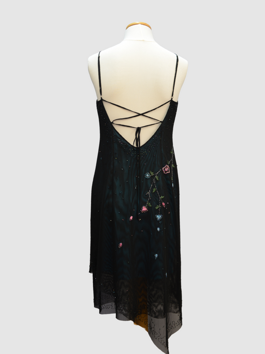 Schwarzes besticktes Spaghettiträgerkleid von BCBG