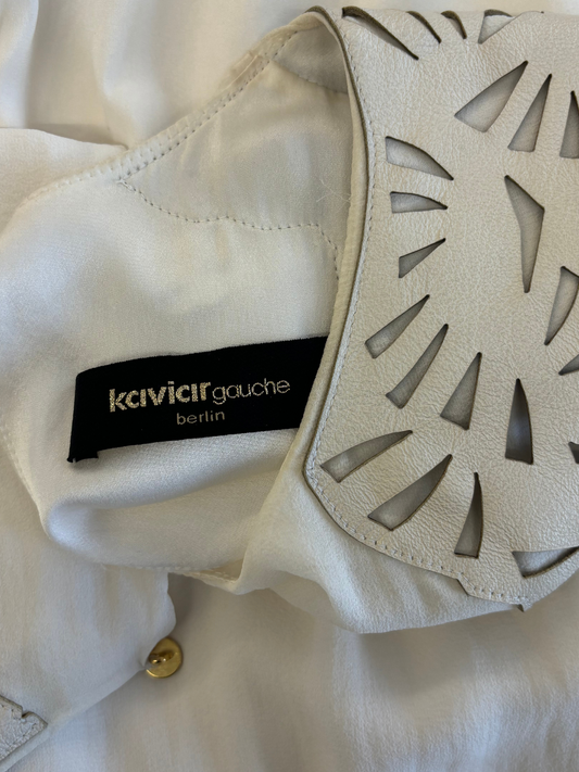 Cremeweißes Seidenkleid mit Leder-Cut-outs von Kaviar Gauche