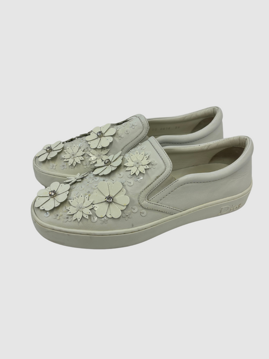 Weiße mit Blüten besetzte Slip Ons von Dior