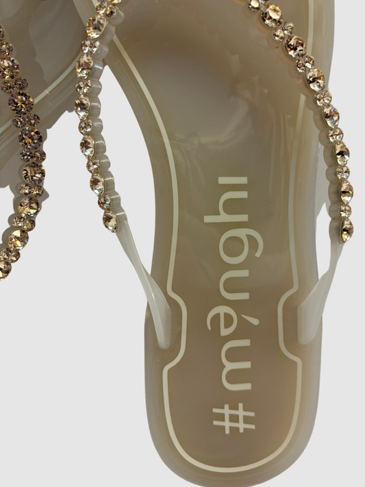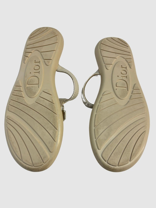 Cremeweiße Leder-Zehensandalen mit goldfarbenem Schlossanhänger von Dior