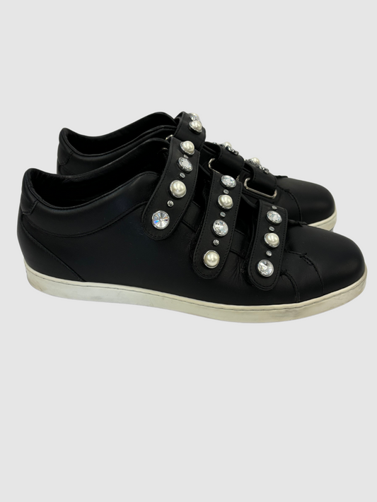 Schwarze Leder-Sneaker mit Perlen von Jimmy Choo