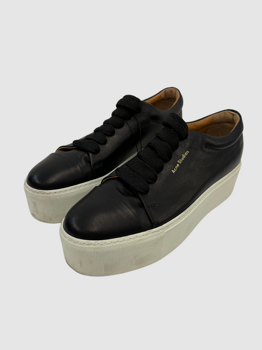 Schwarze Leder-Sneaker mit weißem Plateau von Acne Studios
