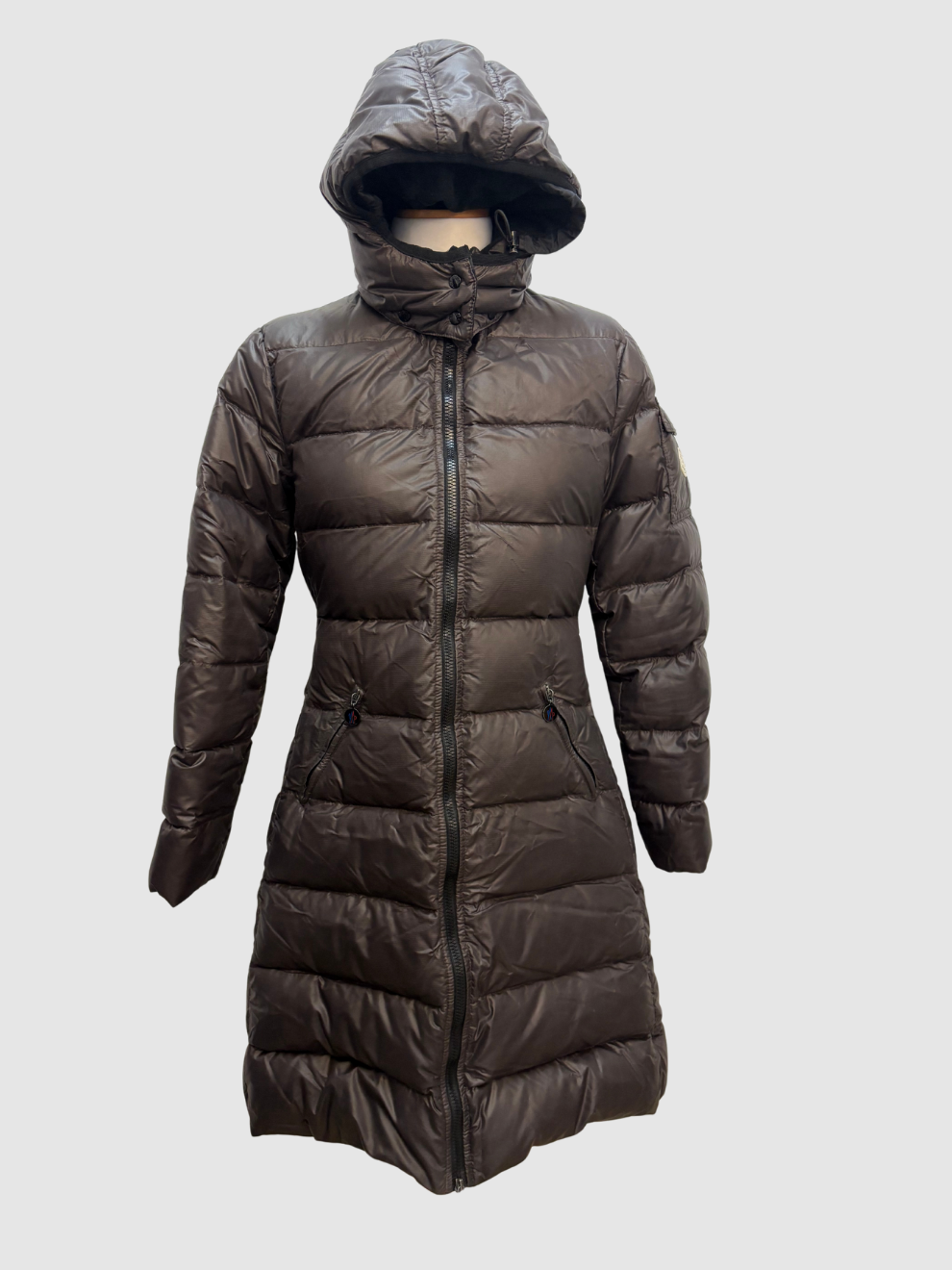 Dunkelbrauner Daunenmantel von Moncler
