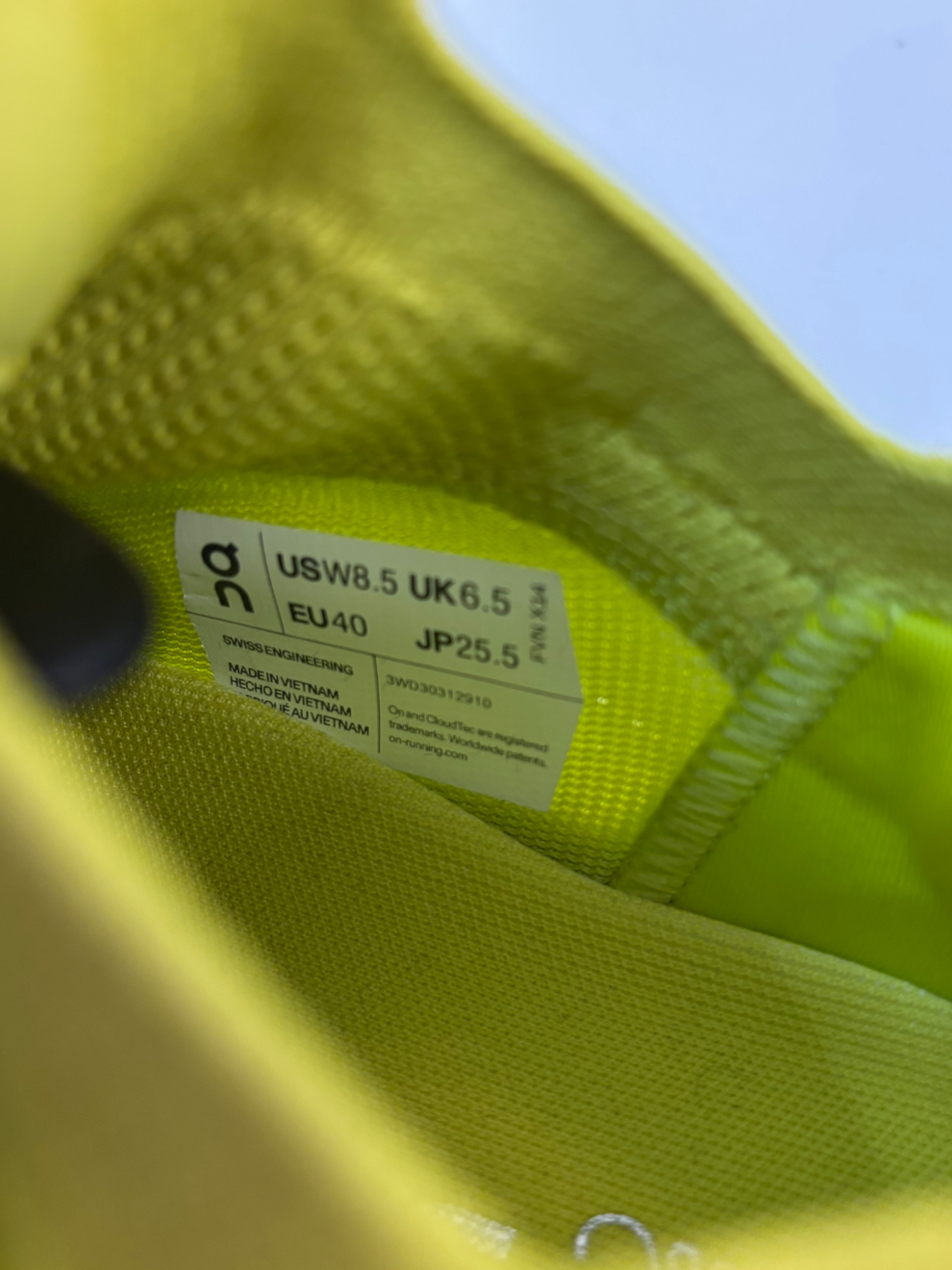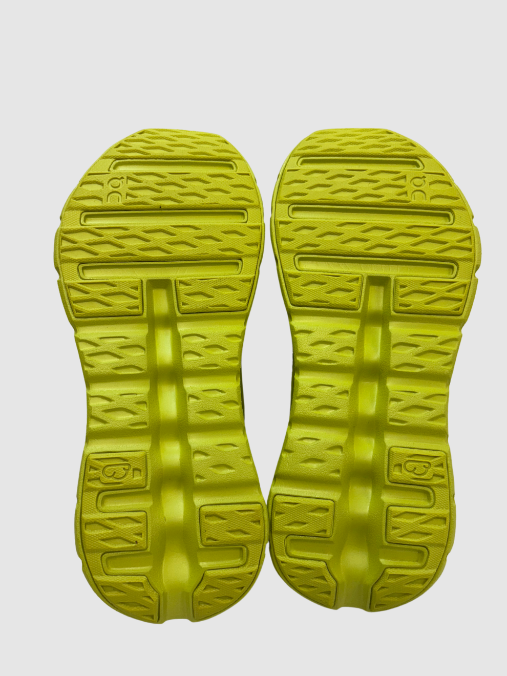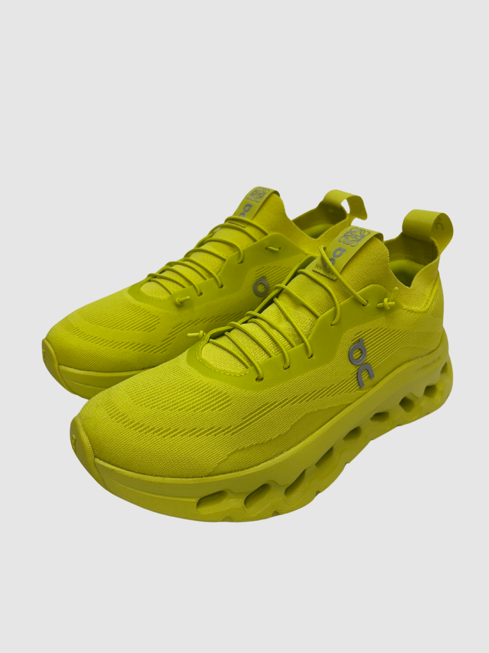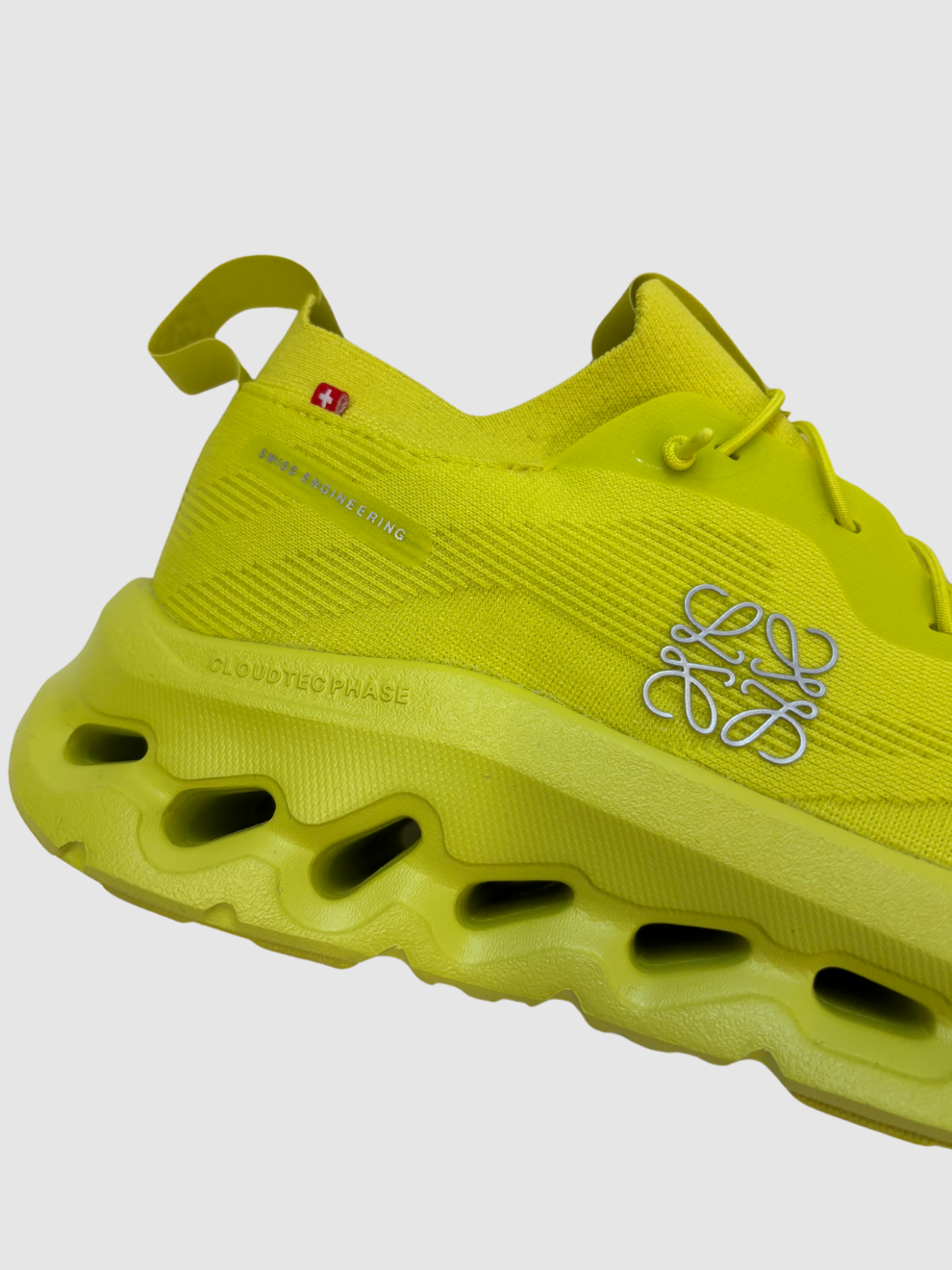 Giftgrüner leichter Sneaker von Loewe x On: aus recyceltem Polyester mit CloudTec Phase Technologie. Socke aus gestricktem Mesh, hohe Sohle aus Schaumstoff, Schnürung mit extra Paar Schnürsenkeln, Schlaufe hinten. Silbernes Loewe sowie On Logo seitlich am Schuh. Ungetragen. Größe: 40