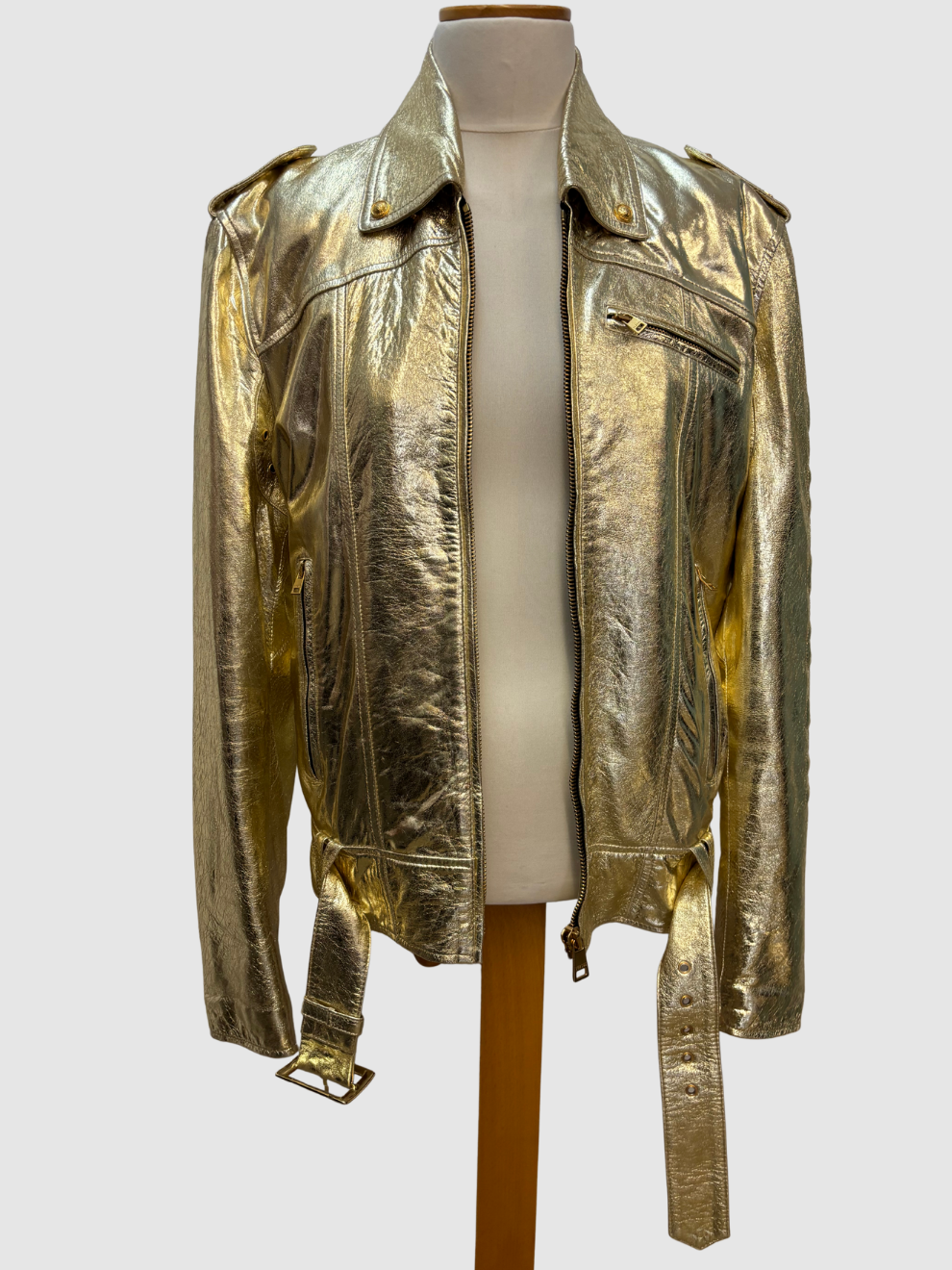 Goldene glänzende Lederjacke von Versus Versace